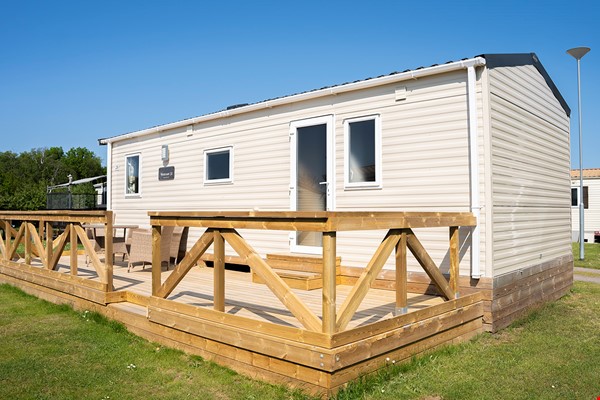 En av våra finaste villavagnar med toppmodern inredning, tre sovrum och en härlig altan – perfekt för större sällskap som vill bo bekvämt och modernt.